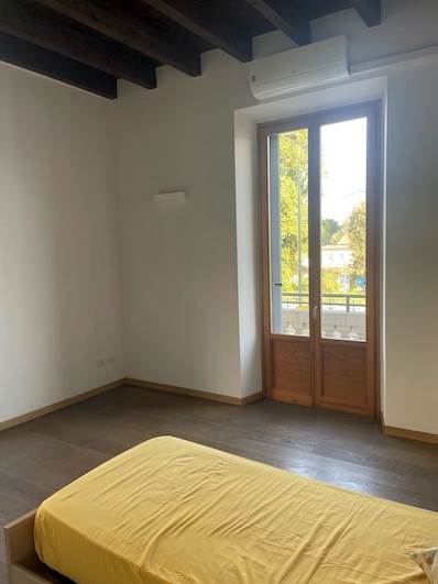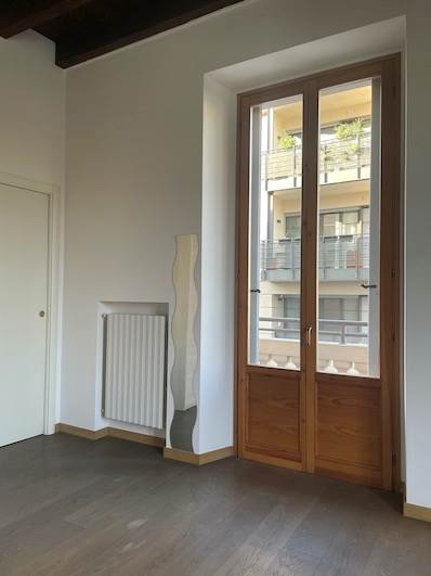 Parquet nella zona giorno e nella camera, infissi in legno con vetro camera, persiane scorrevoli restaurate a scomparsa, soffitto con travi a vista e altezza plafone cm 332, porta blindata DIERRE con doppia mappatura.