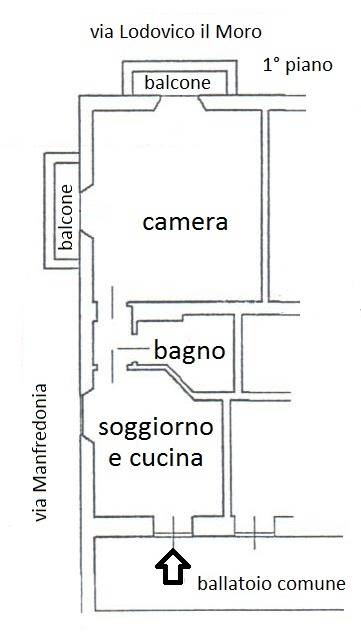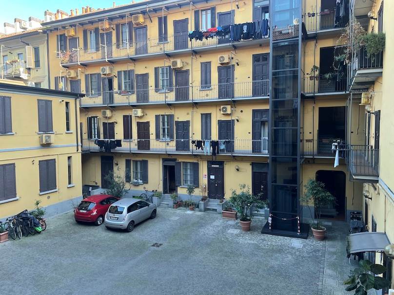 In palazzo d'epoca di ringhiera con servizio di portierato alla mattina in ottime condizioni nelle parti comuni, proponiamo appartamento bilocale ristrutturato con doppia esposizione ad angolo e due balconi, al piano primo con ascensore così composto: cucina abitabile arredata, bagno cieco con doccia, disimpegno, grande camera con due balconi ad angolo.